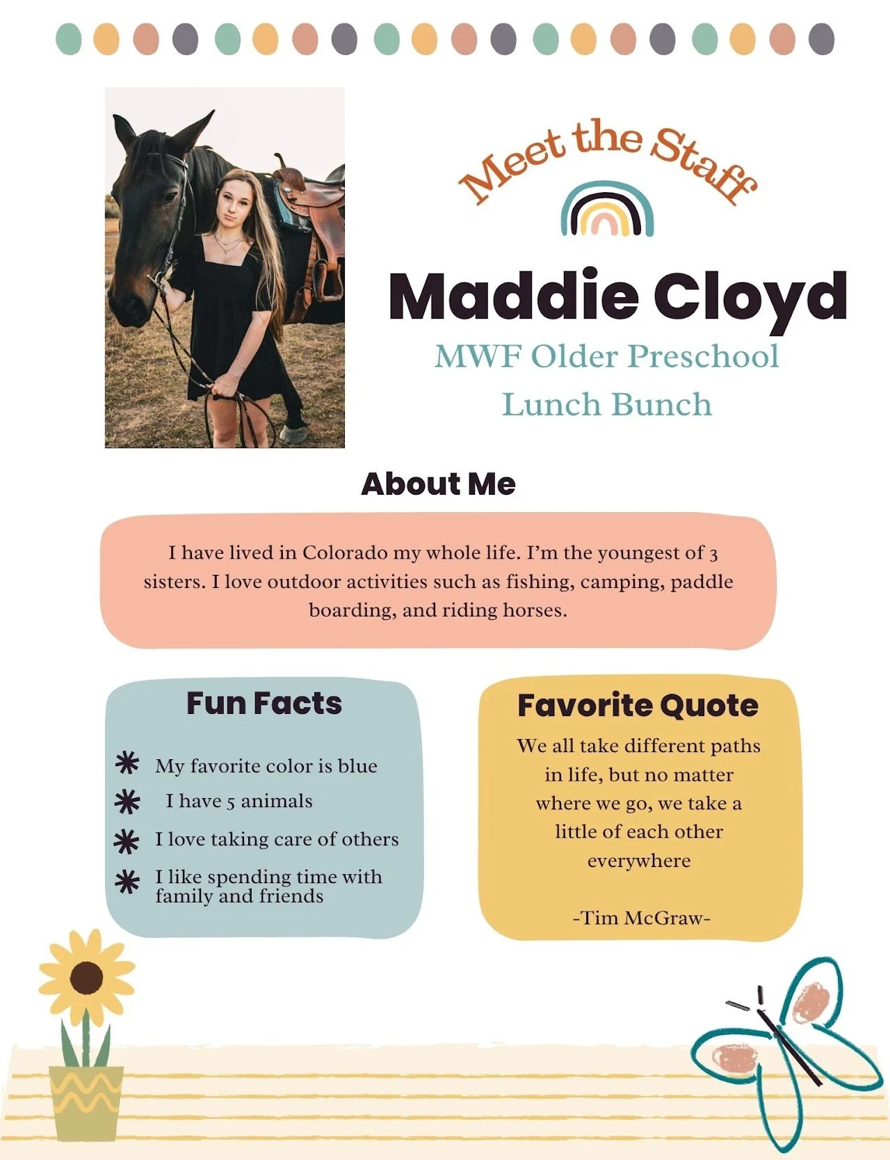 Behind every happy classroom is a team of teachers who truly care. Our staff is made up of passionate early childhood educators who love helping children grow socially, emotionally, and spiritually. With a shared commitment to faith, learning, and connection, our team partners with families to support each child’s unique journey.